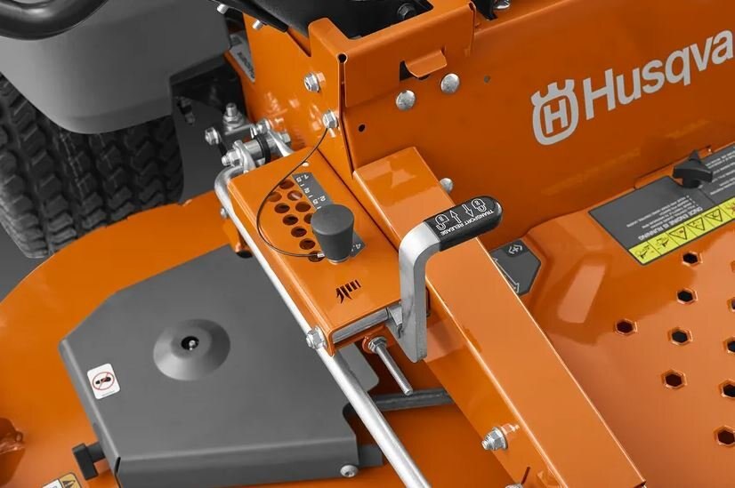 Precision adjustment of the cutting deck's height is made simple by foot-activated controls. |